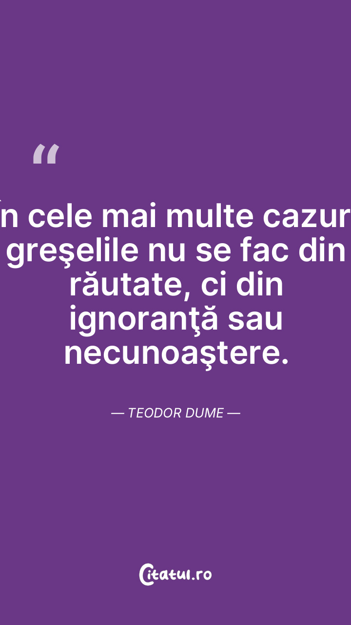 Dacă îţi ignori greşeala înseamnă că îţi ignori propria conştiinţă. Teodor Dume