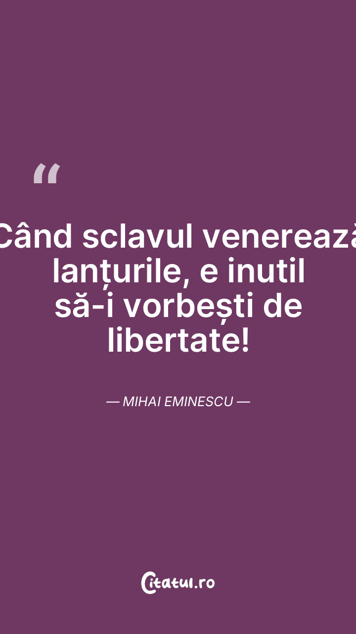 Dar libertatea nu înseamnă libertinaj, libertatea instinctelor oarbe, trăirea în hazard și în eventual. Mircea Eliade