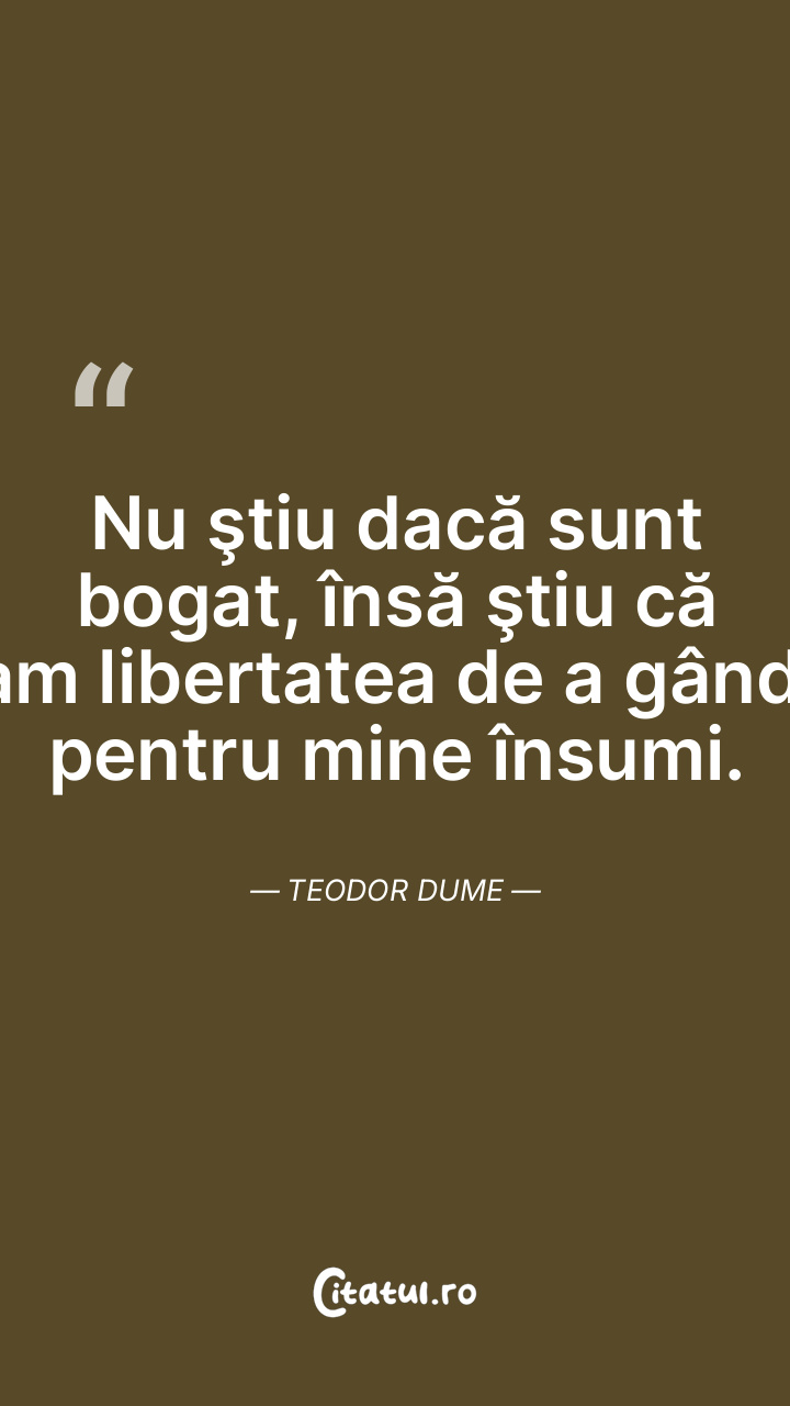 Libertatea e un risc pe care nu poţi să ţi-l asumi ca Om. Teodor Dume