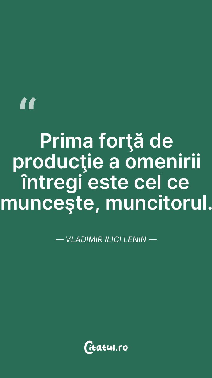 Munca e balsamul sângelui, munca e izvorul virtuţi...