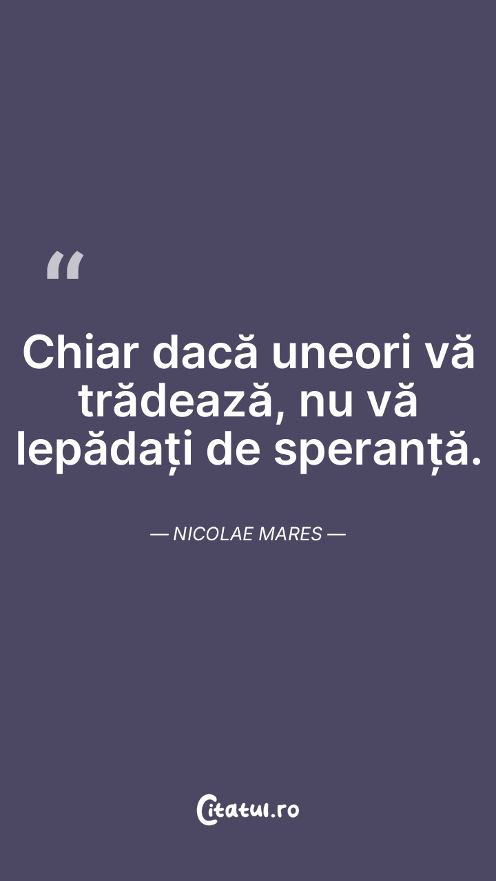 Cum poți să reușești, când nu mai ai nicio speranță? O singură cale există: și mai mult în speranță să crezi. Nicolae Mares
