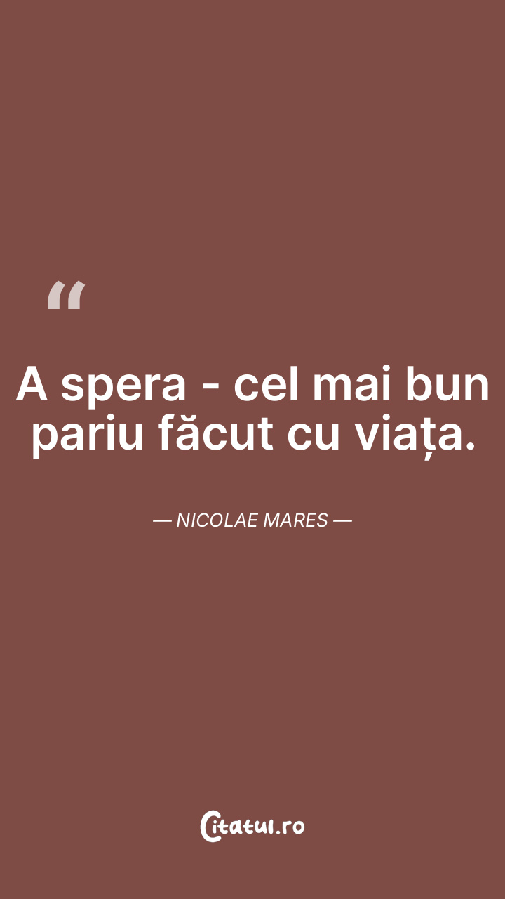 Când ai puțină speranță, chiar și un mic progres devine o realizare valoroasă. Nicolae Mares