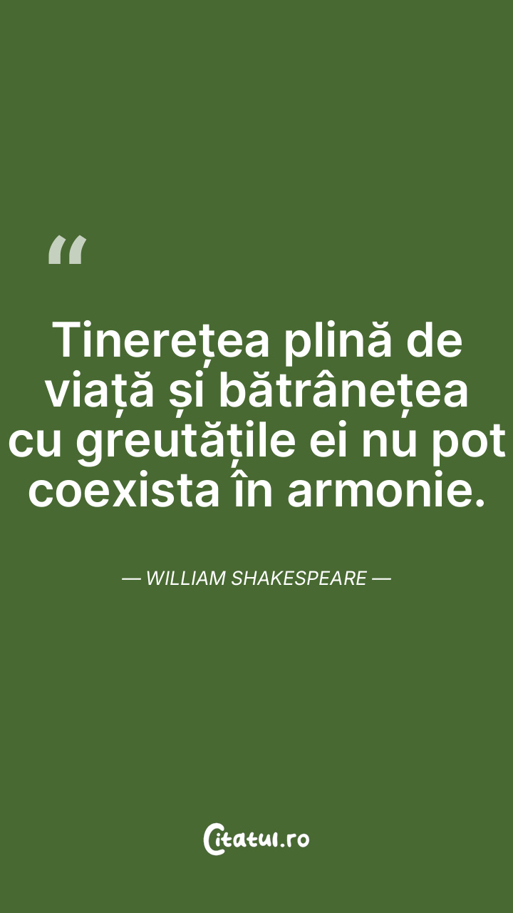 Tinerii care sunt prea înțelepți și maturi pentru vârsta lor nu reușesc să își trăiască viața la intensitate maximă. William Shakespeare