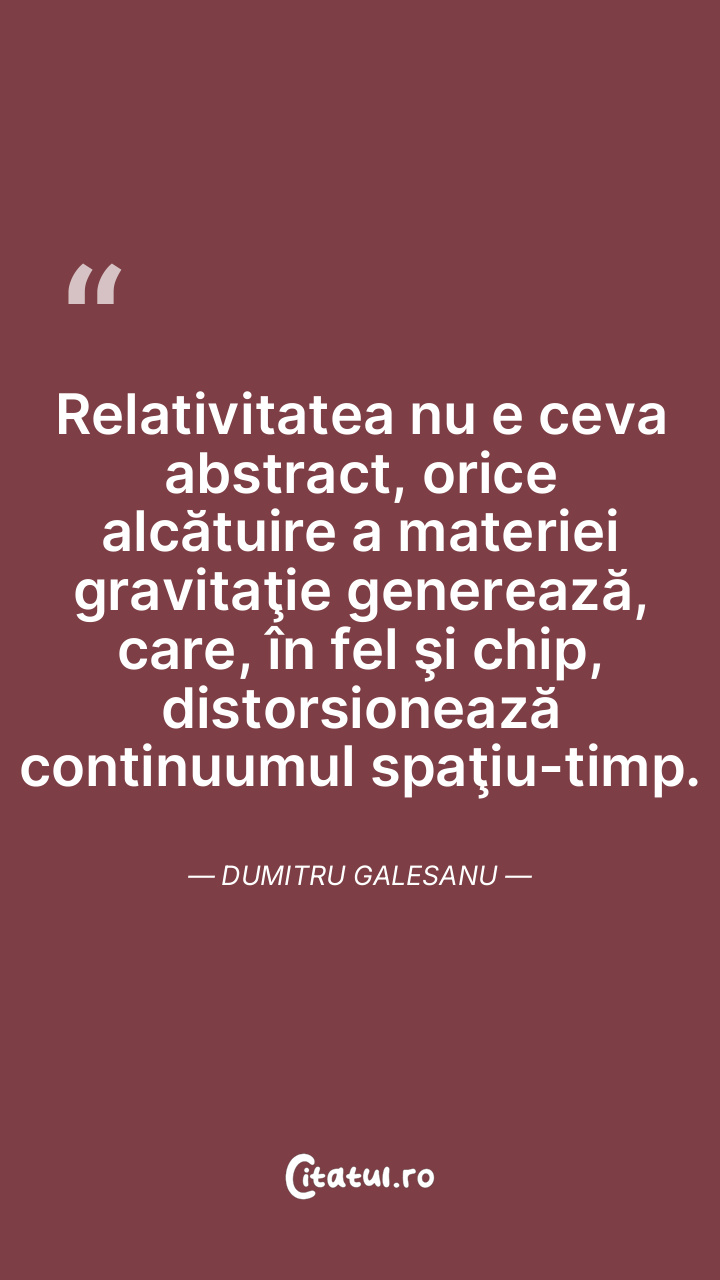 În realitatea gravitaţională, mişcarea este cheia de boltă pentru înţelegerea universului, iar nu doar spaţiul şi timpul măsurate în valori absolute. Dumitru Galesanu
