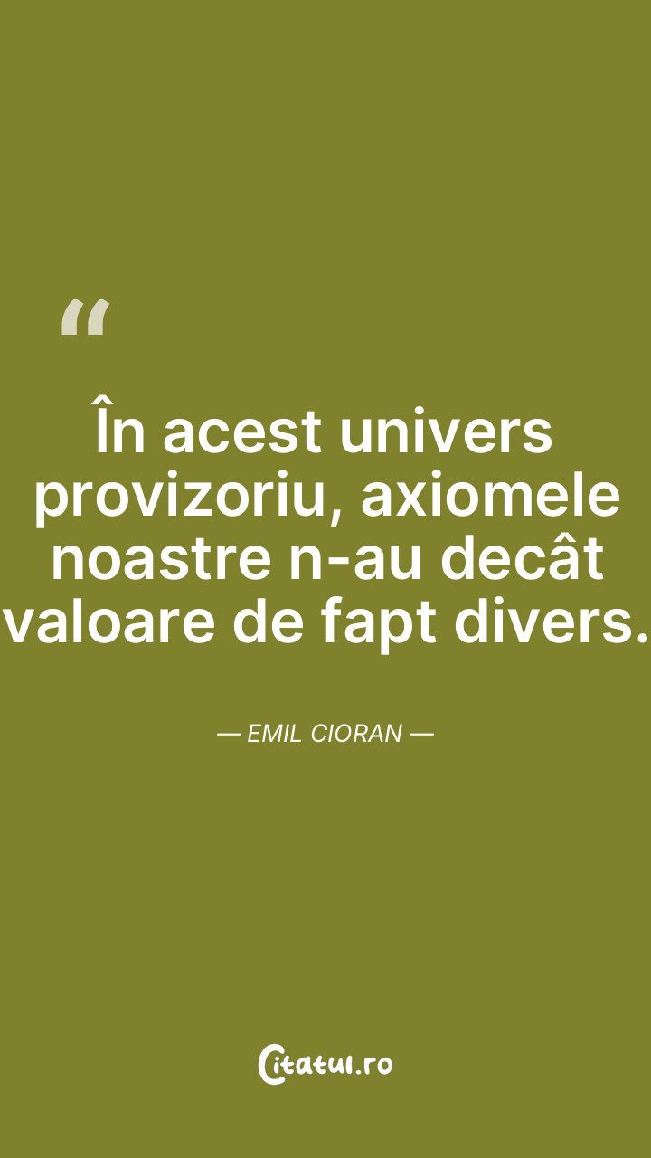 Fiecare e pentru sine unicul punct fix în univers. Iar cel care moare pentru o idee, moare pentru că este ideea lui, iar ideea lui e viaţa lui. Emil Cioran