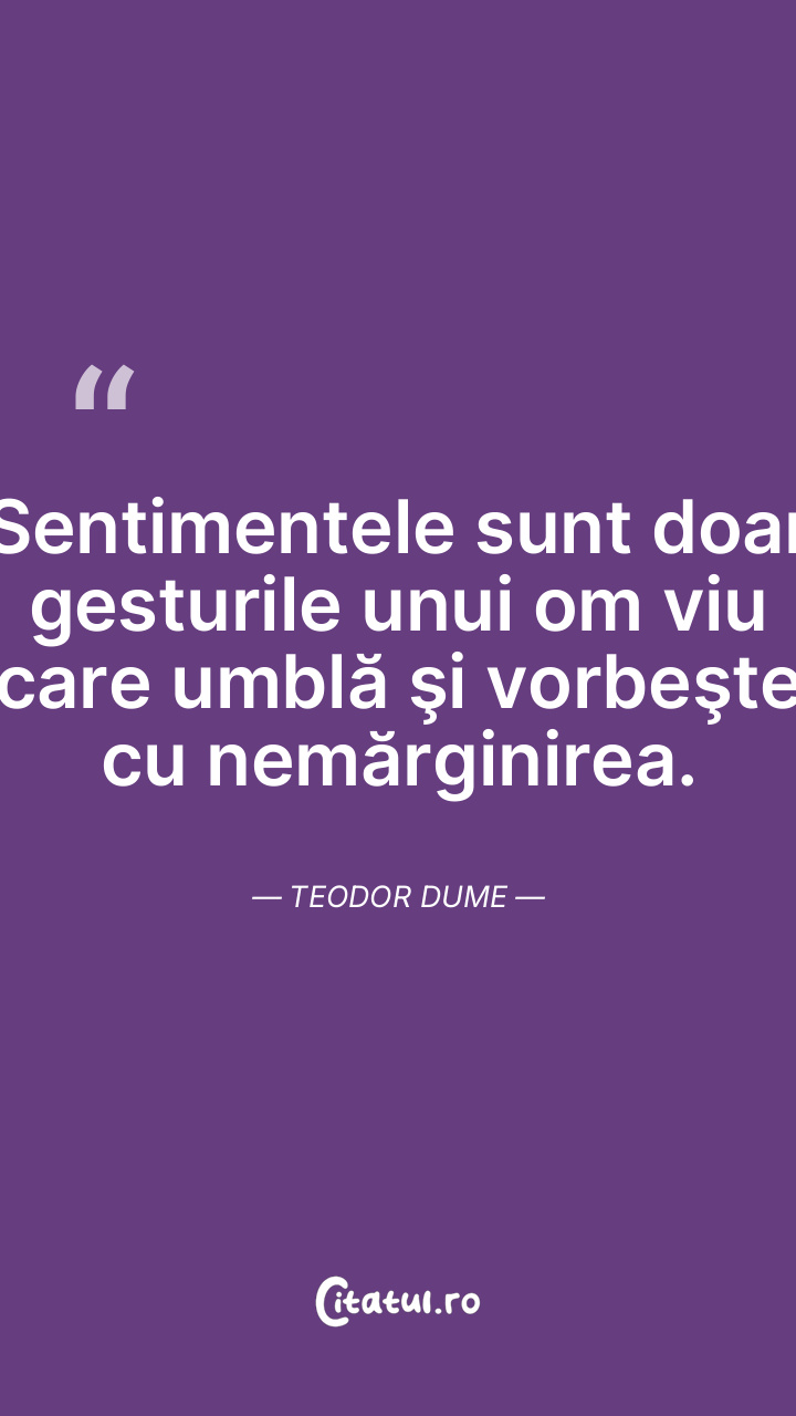 Cei care nu au sentimente trăiesc în afara lucrurilor. Teodor Dume