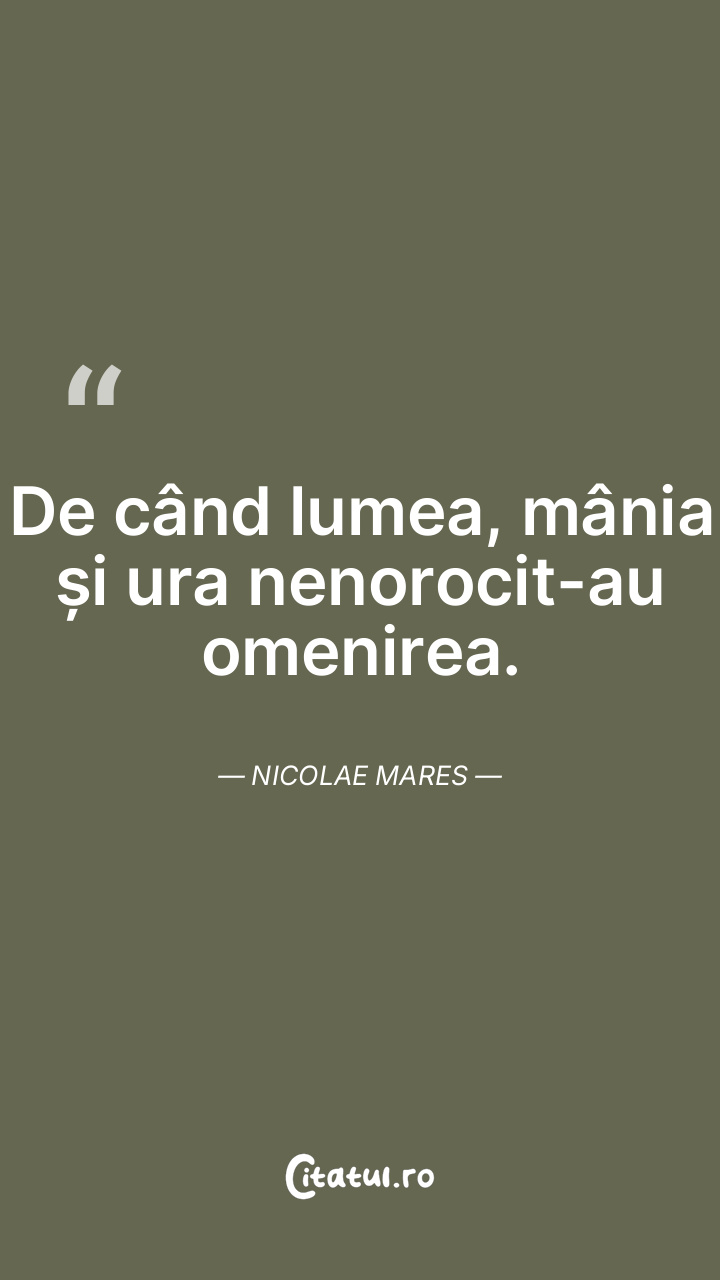 Cultura reprezintă o creație nobilă, ce refuză să se asocieze cu ură sau conflicte. Nicolae Mares