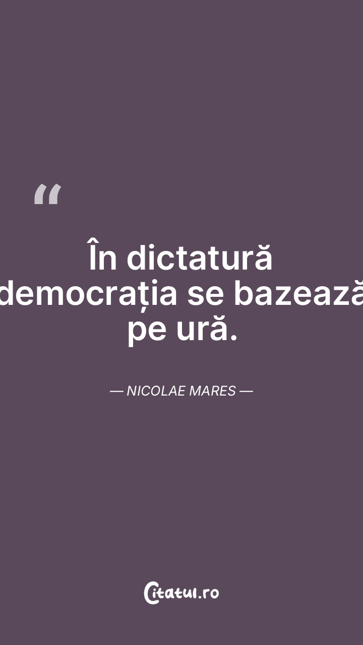 În orice dictatură democrația se bazează pe ură. Nicolae Mares