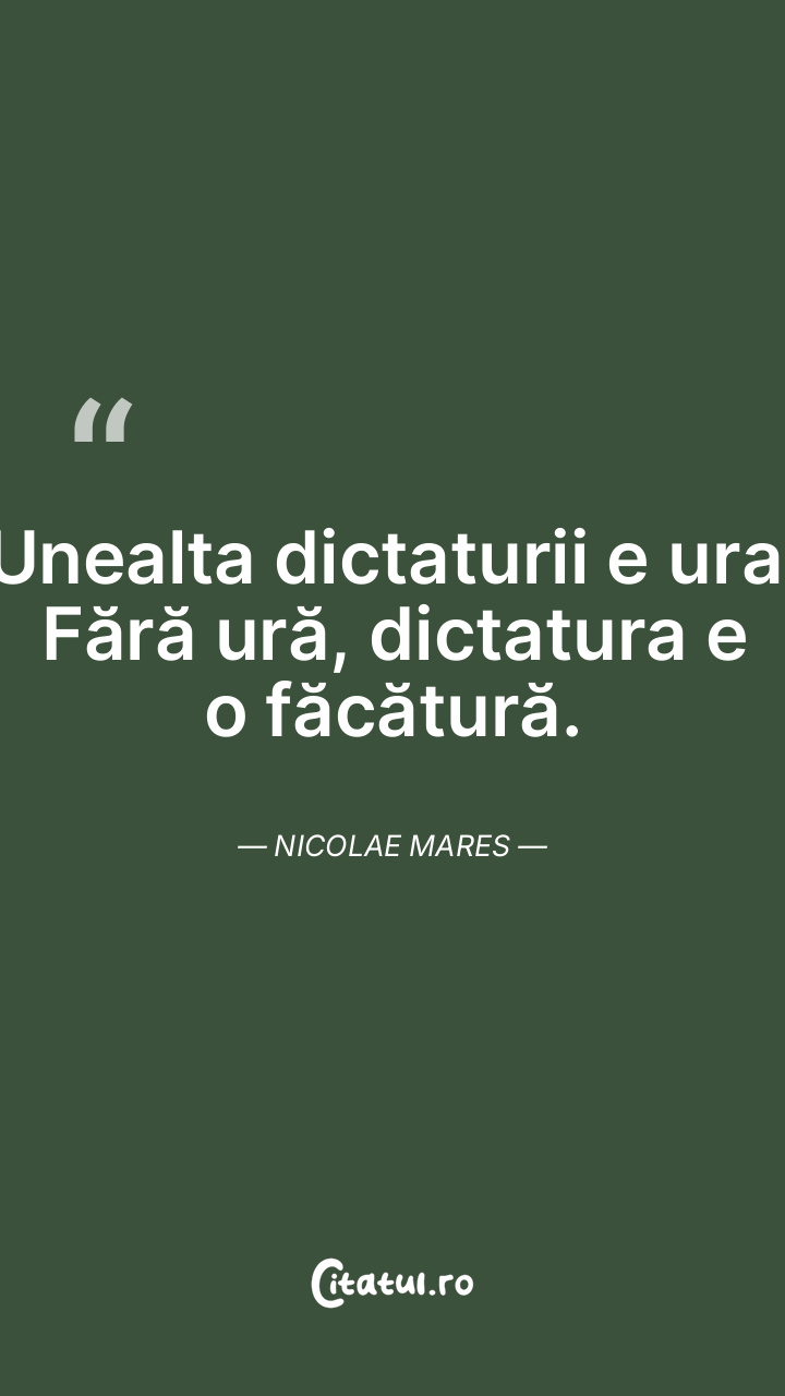 În dictatură democrația se bazează pe ură. Nicolae Mares