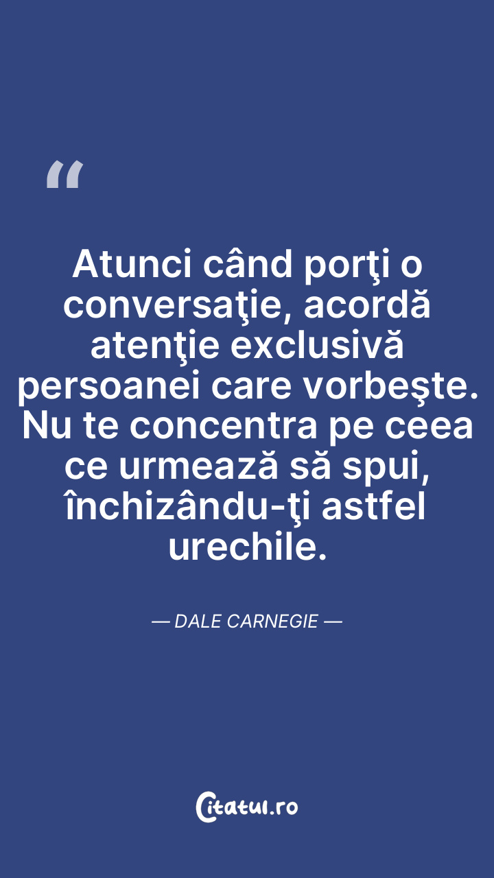 Dă-le celorlalţi şansa de a se simţi importanţi ascultându-i cu atenţie, lăsându-i să te depăşească. Dale Carnegie