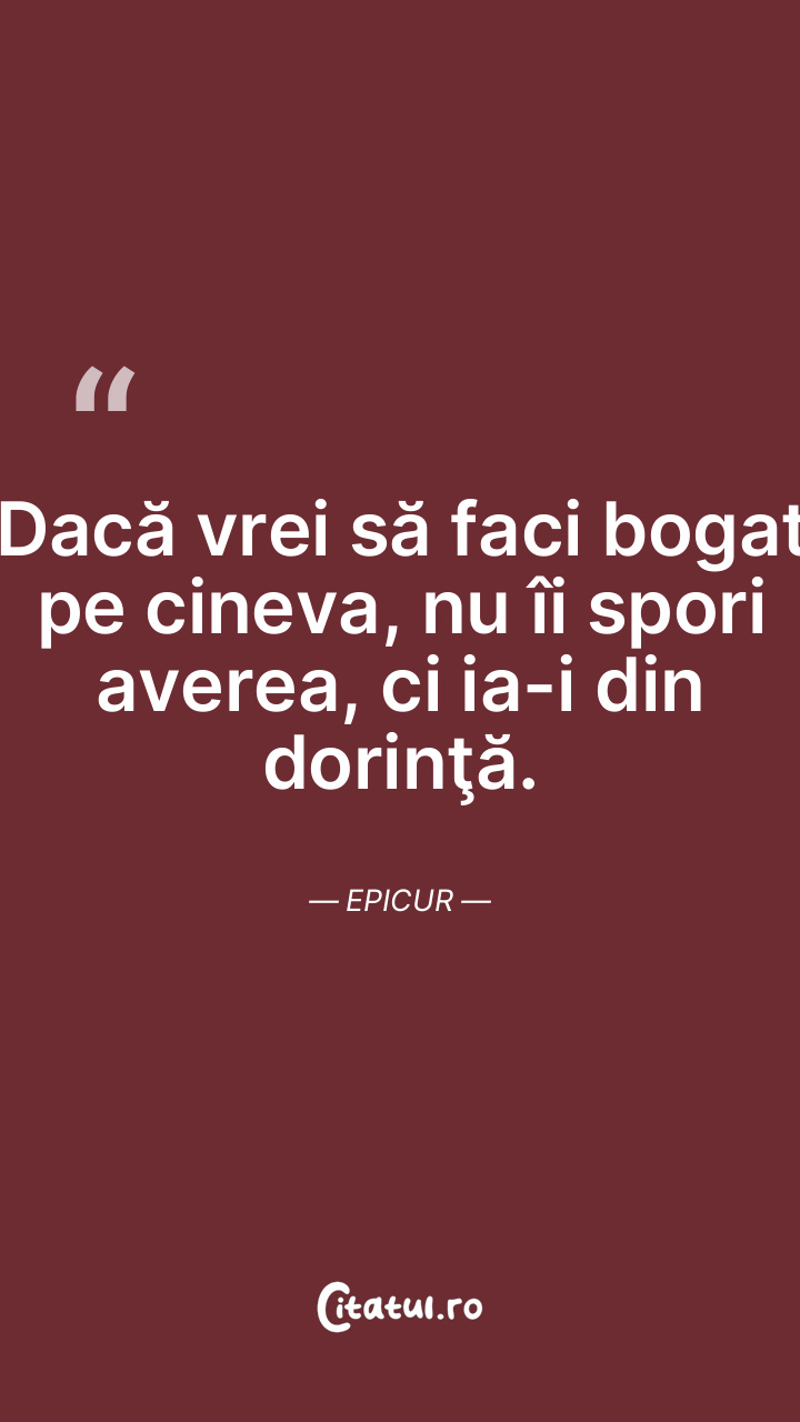 Toate dorinţele trebuie supuse unui astfel de examen: ce se va întâmpla cu mine dacă se va împlini dorinţa, şi ce va fi dacă nu se va împlini? Epicur