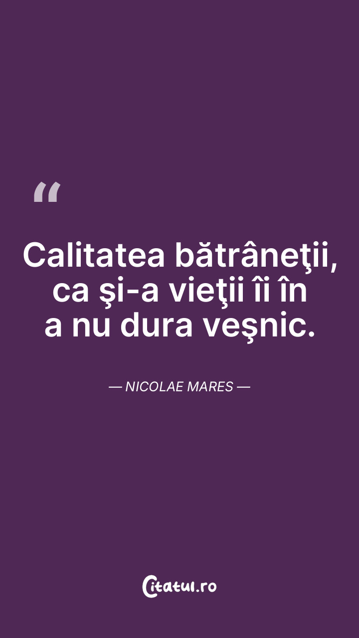 Bătrânețea are o frumusețe efemeră, care ne amintește să prețuim fiecare moment. Nicolae Mares