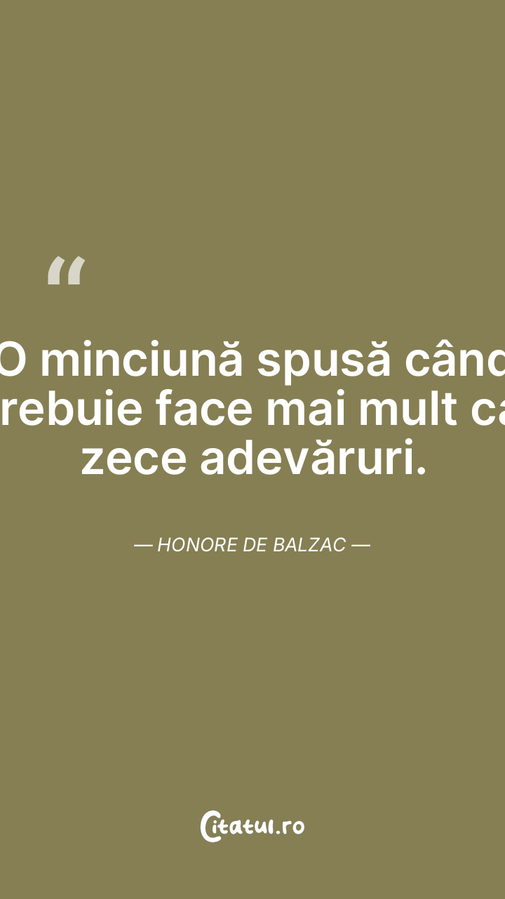 Cine spune o minciună nu-şi dă seama ce sarcină uriaşă îşi asumă. Căci este forţat după aceea să inventeze alte 20 de minciuni pentru a şi-o susţine pe cea dintâi. Alexander Pope