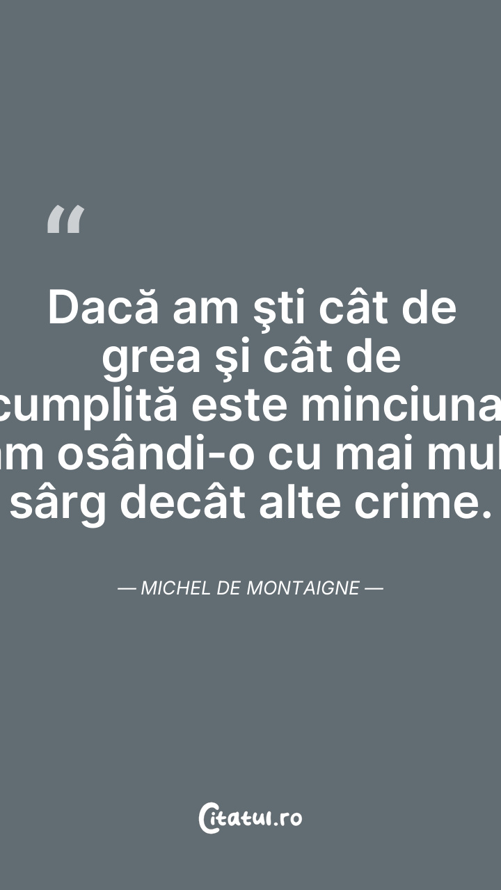 Minciuna mi se pare şi mai rea decât desfrânarea. Michel de Montaigne