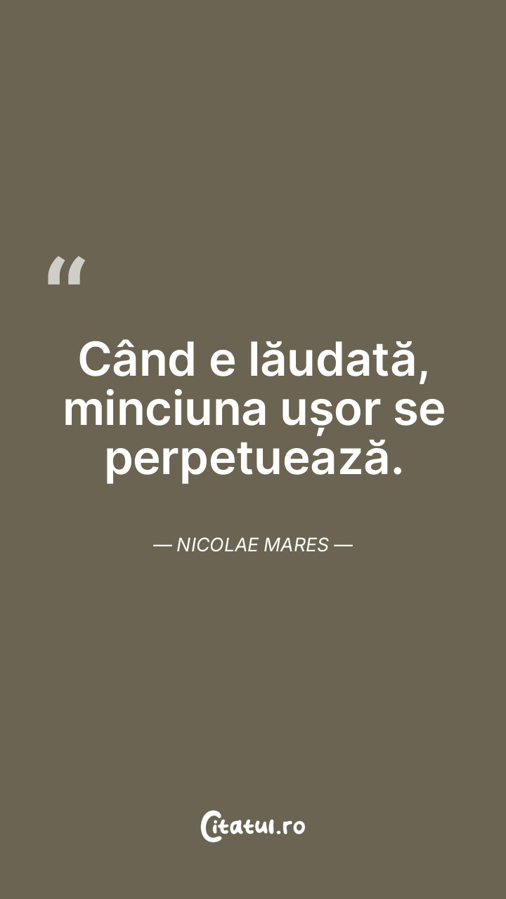 Nu odată, lăudată fiind, minciuna se perpetuează. ...