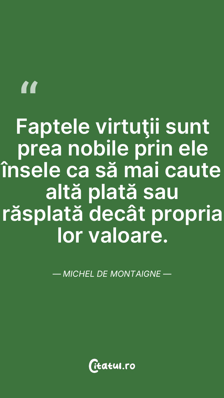 Cele ce vin din afară, dobândesc gust şi valoare din constituţia internă, după cum veşmintele nu ne încălzesc cu căldura lor proprie, ci dintr-a noastră, pentru care-s bune să o acopere şi să o întreţină. Michel de Montaigne