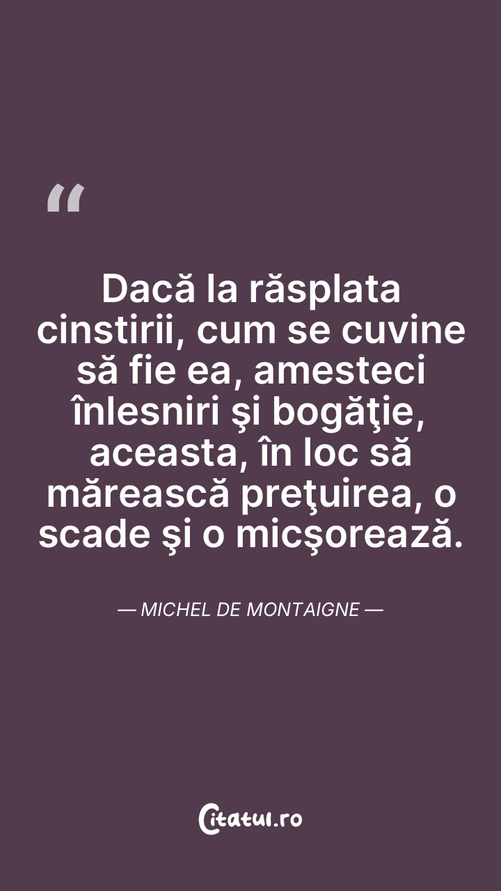 Vreau să fiu bogat cu propriile mele bogăţii, nu cu bogăţii împrumutate. Michel de Montaigne