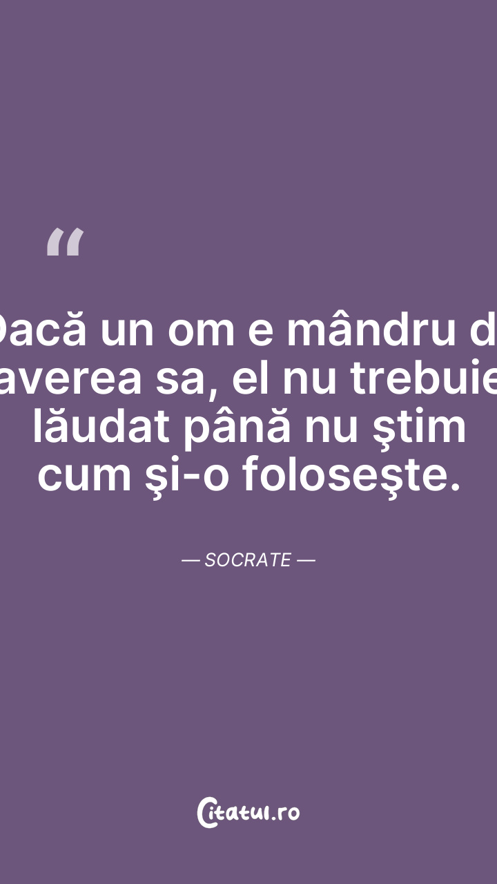 Nu virtutea se naşte din avere, ci din virtute vin...