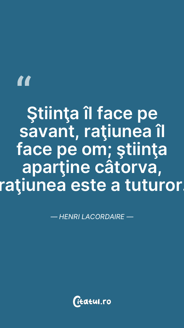 Ştiinţă - Prea puţină ştiinţă te îndepărtează de religie, iar multă ştiinţă te aduce iar în sânul ei. Gustave Flaubert