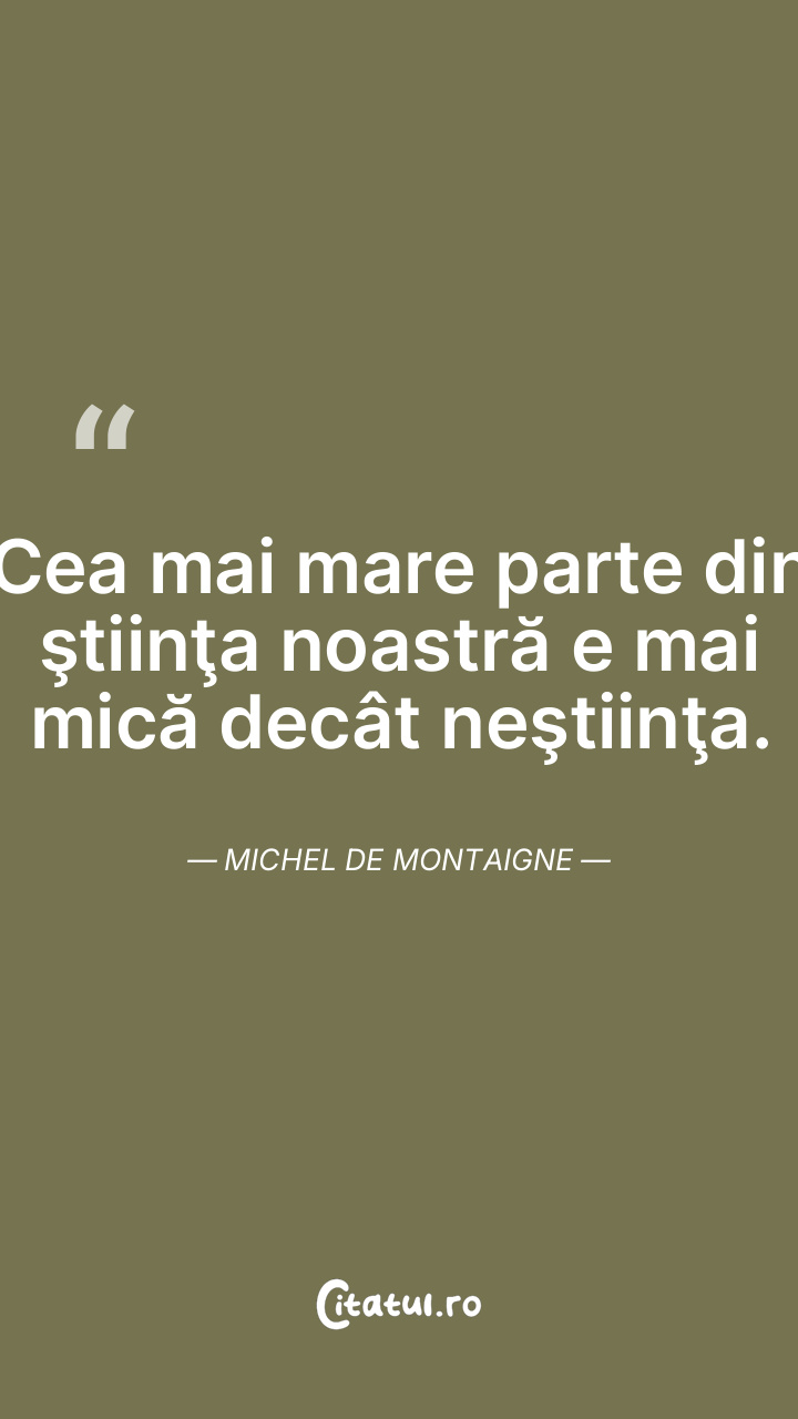 Ştiinţa este o mare podoabă şi o unealtă care te slujeşte minunat. Michel de Montaigne