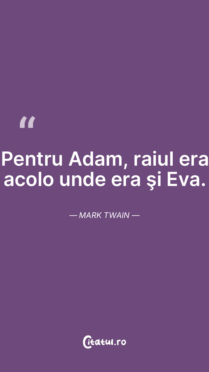 Adam (la mormântul Evei): Unde era ea, acolo este Raiul. Mark Twain