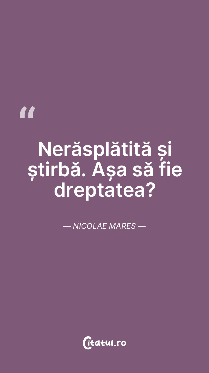 Răutatea greu află ce-i dreptatea. Nicolae Mares