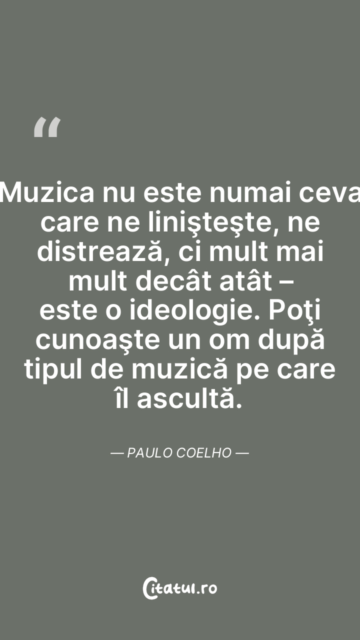 Muzica bună e ca haina prostului. Scumpă. ... Categorie: citate viata Dificultate: Ușor de citit și înțeles Votează: ★ ★ ★ ★ ★ (0/5 din 0) Distribuiți acest citat? Alegeți platforma preferată: Salvează citatul in telefon/pc Muzica bună e ca haina prostului. Scumpă. Copiază Favorite Eroare