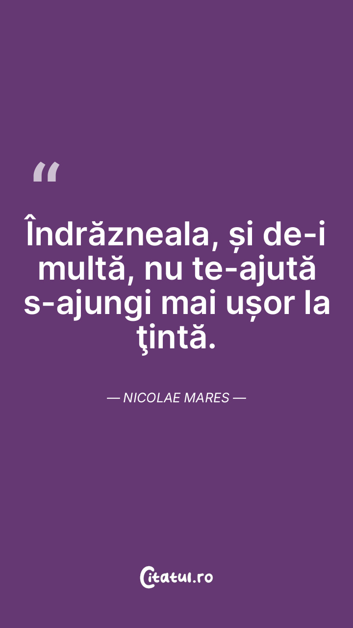 Deseori ideile străine te pot ajuta; dar și mai des ireversibil ele te pot îngropa. Nicolae Mares