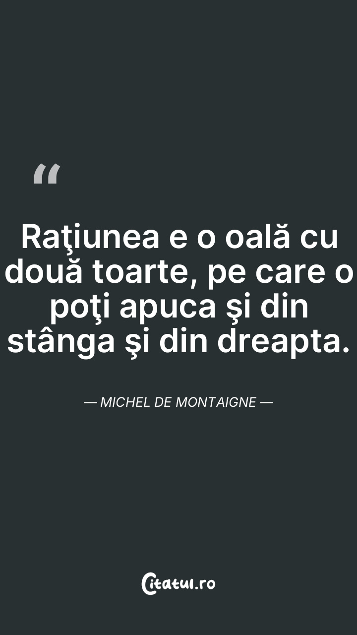 Raţiunea îşi vede de drumul ei, că-i frântă, şchioapă sau ruptă din şale. Michel de Montaigne