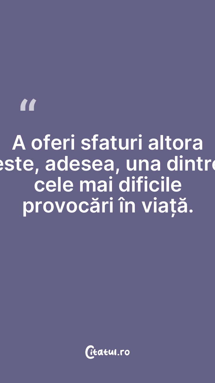 Nu ascultaţi niciodată de sfatul unei persoane car...