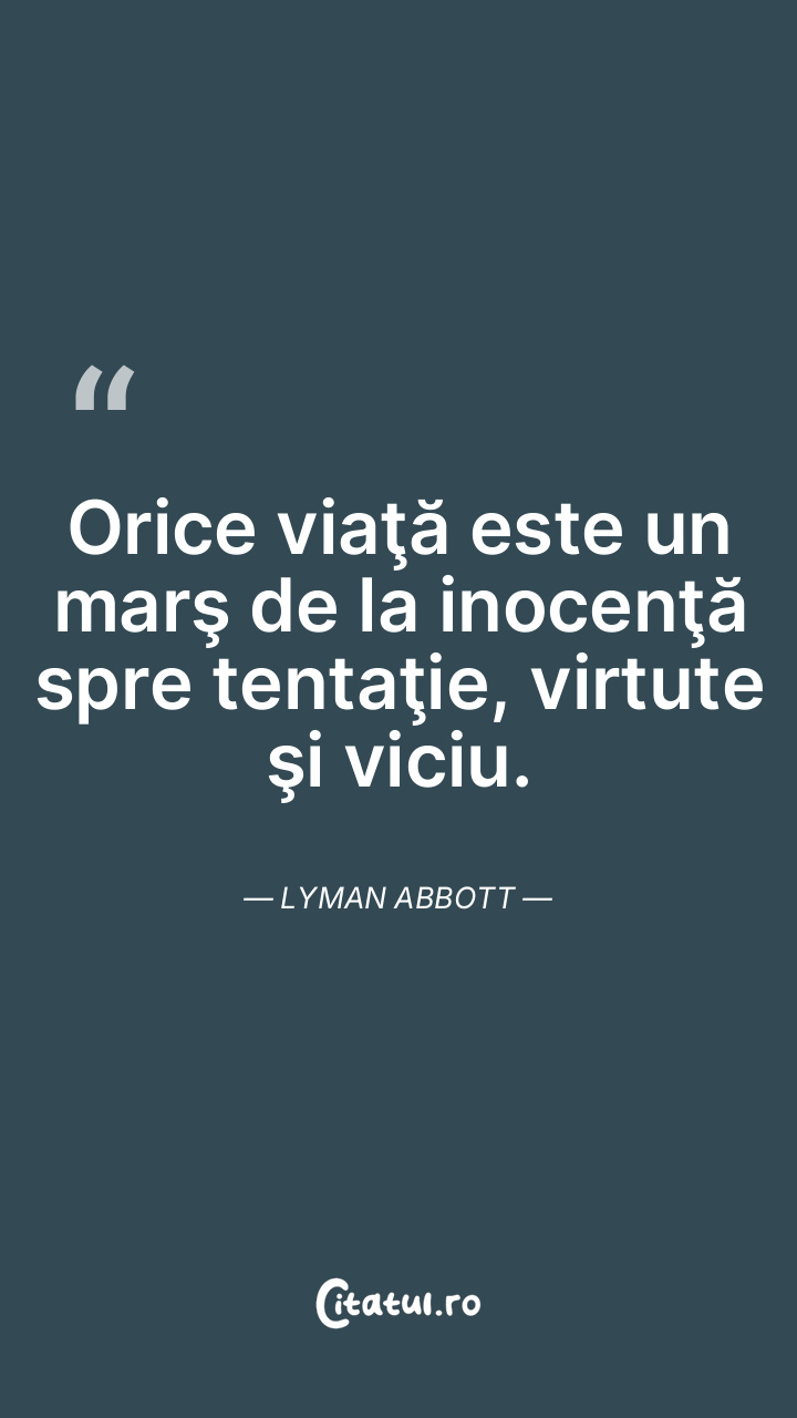 Orice viaţă este un marş de la inocenţă spre tentaţie, virtute şi viciu. Lyman Abbott