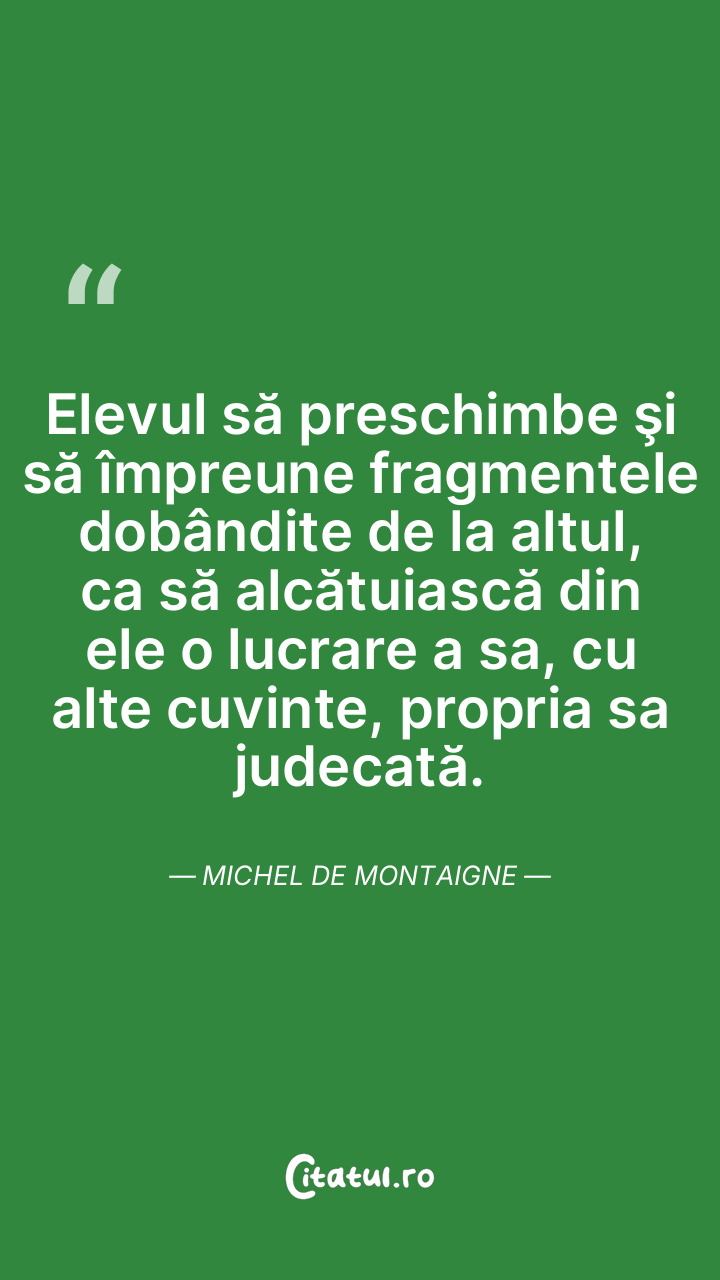 Cel ce îşi va da limpede seama de înălţimea unei judecăţi străine, va izbuti să judece şi el la aceeaşi înălţime. Michel de Montaigne
