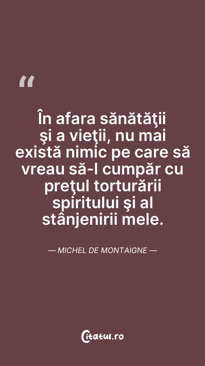În afara sănătăţii şi a vieţii, nu mai există nimic pe care să vreau să-l cumpăr cu preţul torturării spiritului şi al stânjenirii mele. Michel de Montaigne