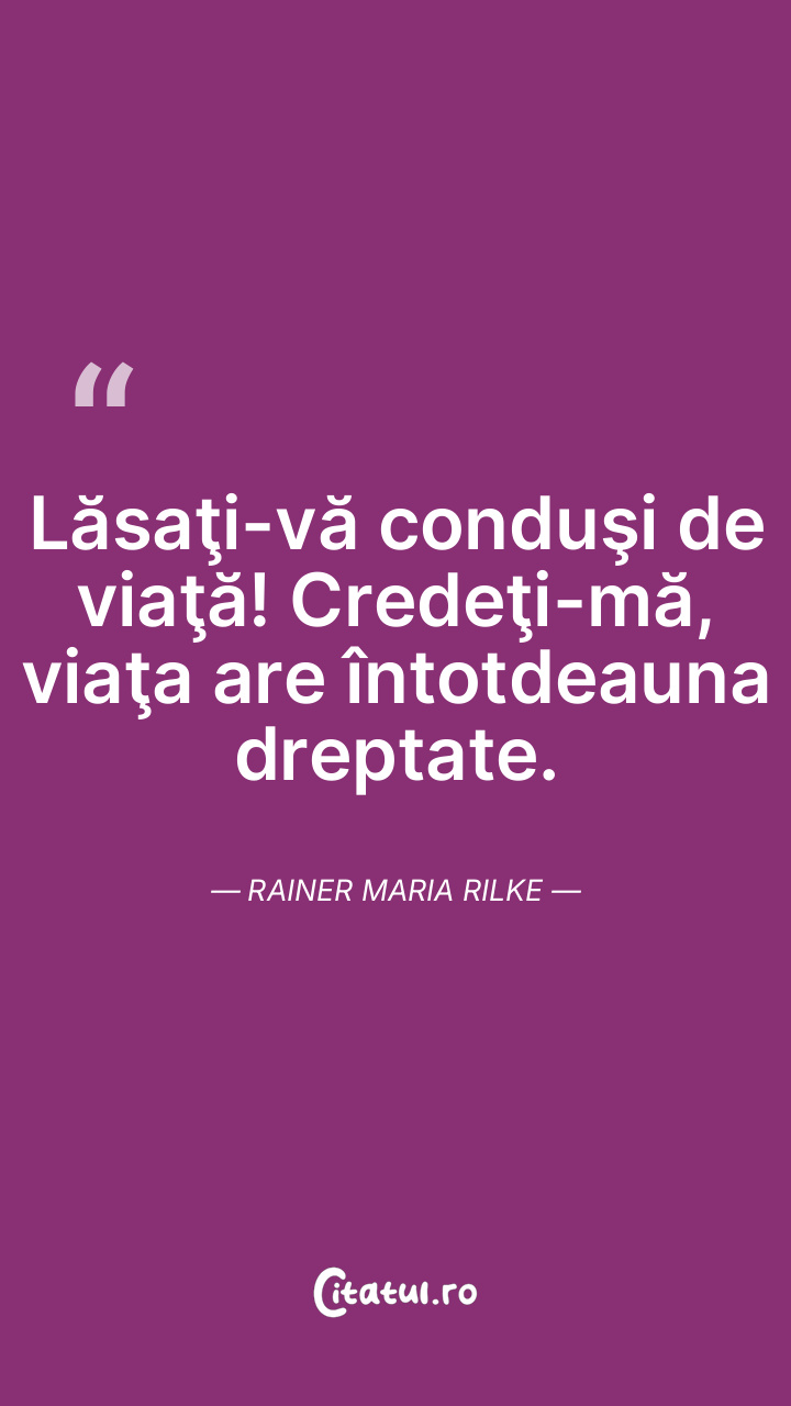 Lăsaţi-vă conduşi de viaţă! Credeţi-mă, viaţa are întotdeauna dreptate. Rainer Maria Rilke