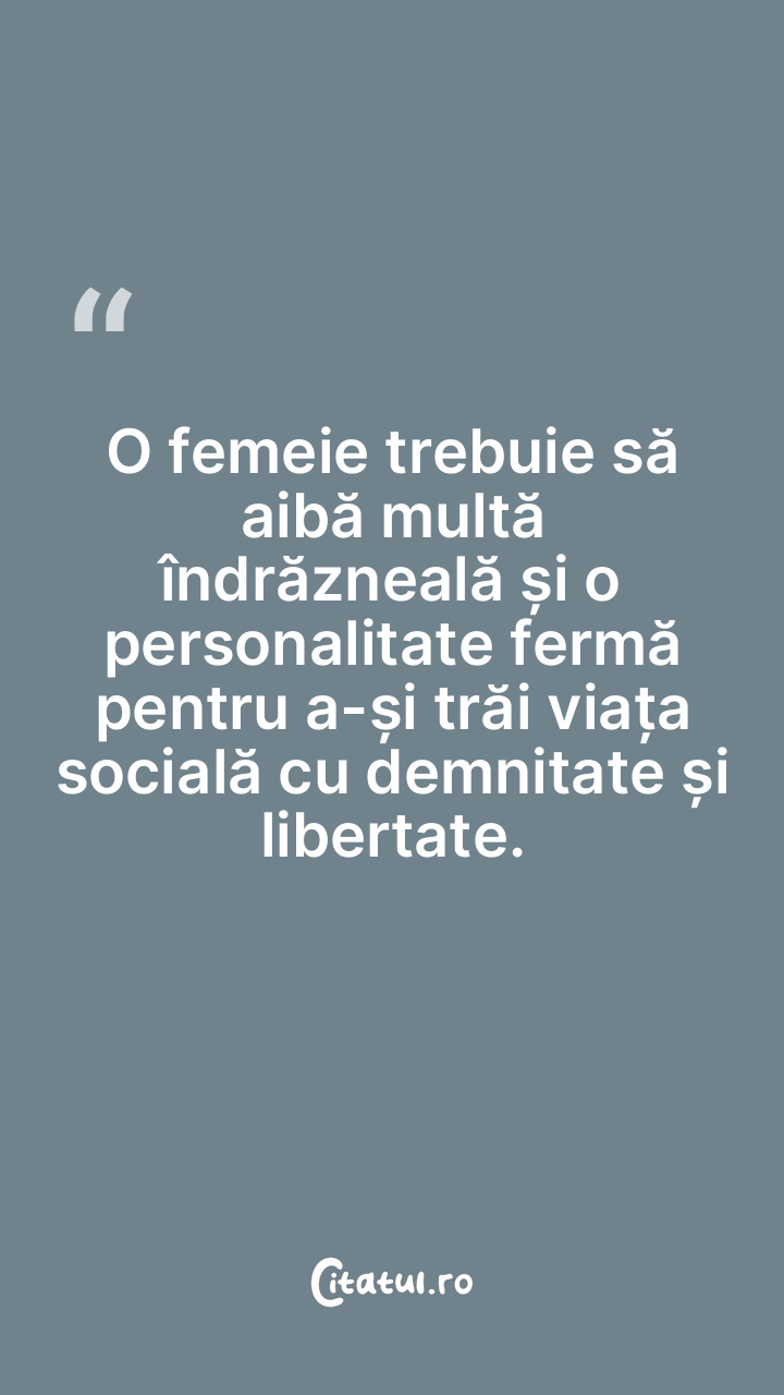 O femeie trebuie să aibă multă îndrăzneală și o personalitate fermă pentru a-și trăi viața socială cu demnitate și libertate.