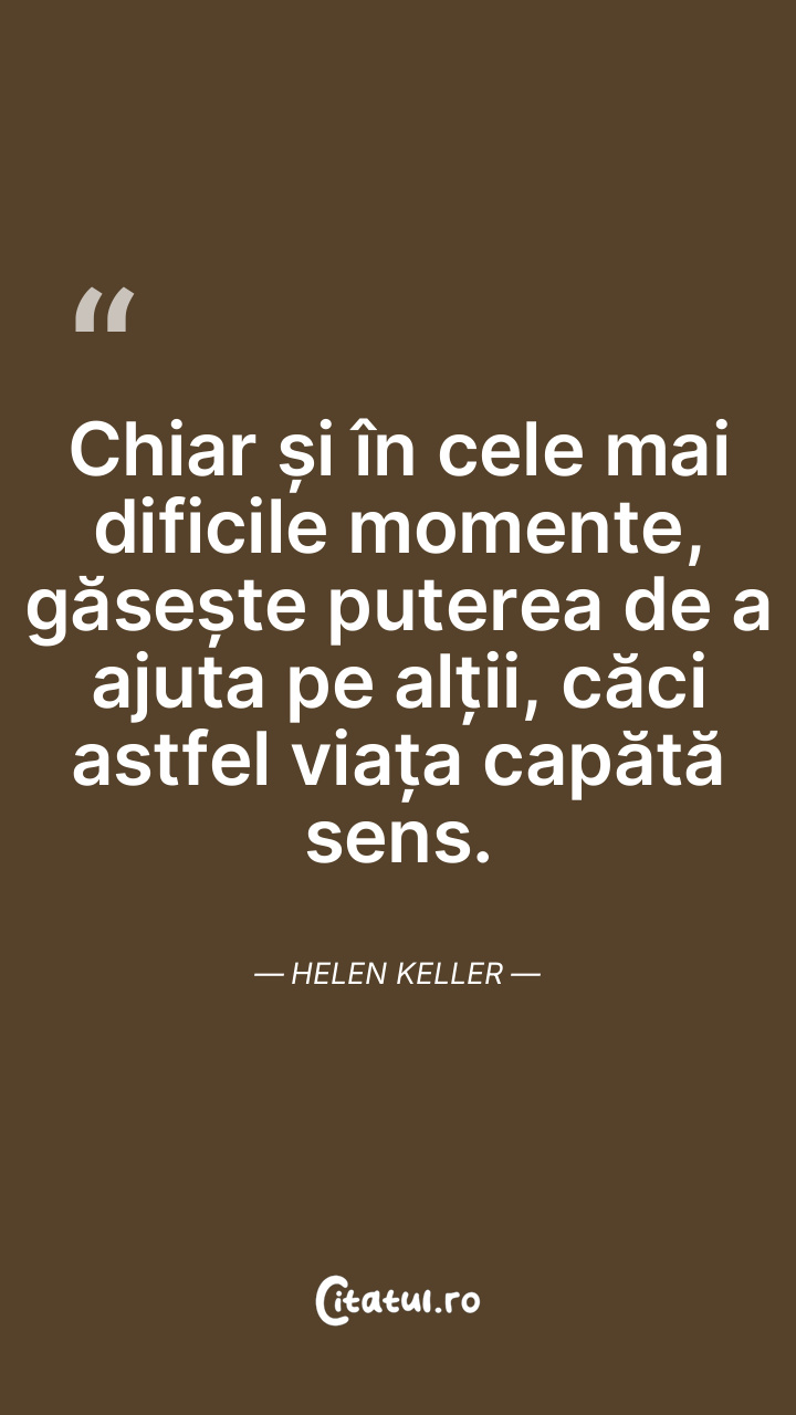 Chiar și în cele mai dificile momente, găsește puterea de a ajuta pe alții, căci astfel viața capătă sens. Helen Keller