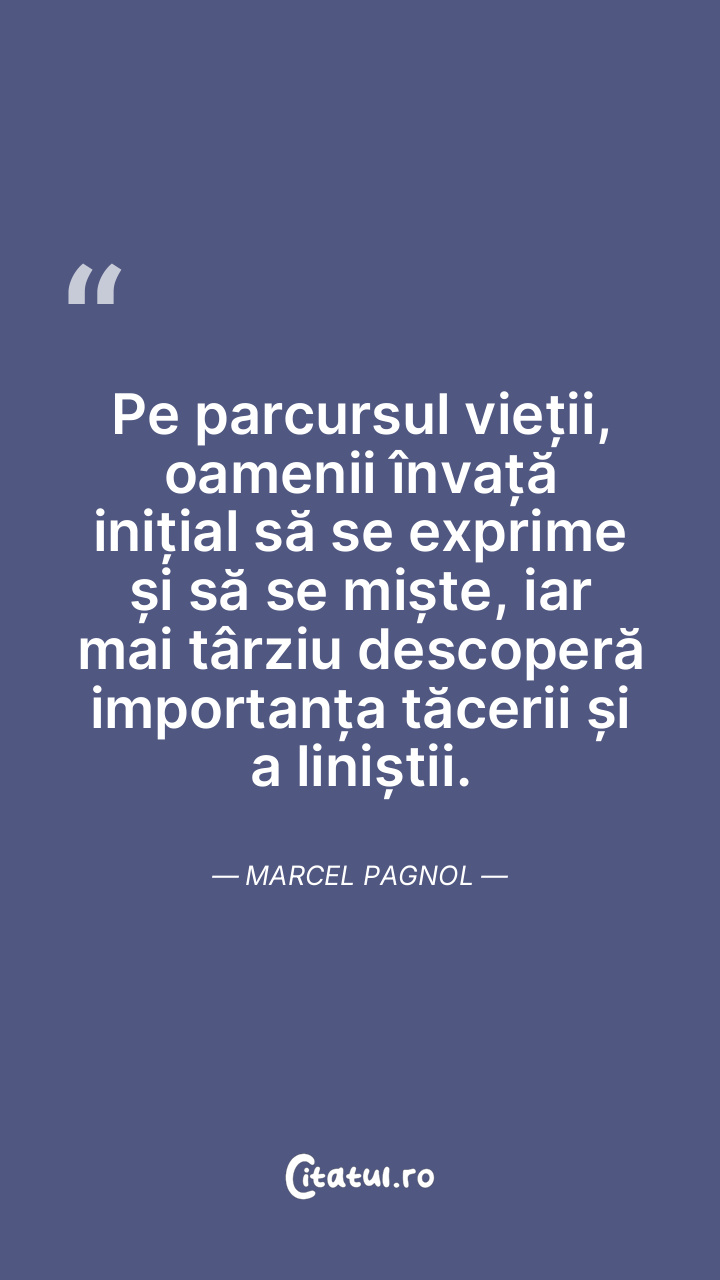 Pe parcursul vieții, oamenii învață inițial să se exprime și să se miște, iar mai târziu descoperă importanța tăcerii și a liniștii. Marcel Pagnol