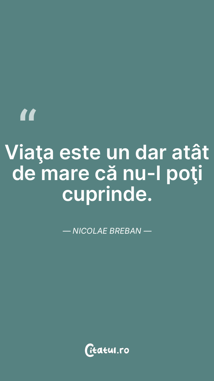 Viaţa este un dar atât de mare că nu-l poţi cuprinde. Nicolae Breban