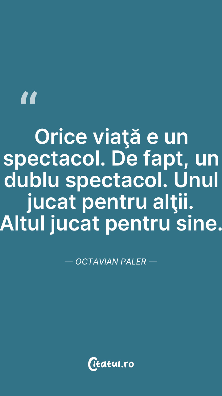 Orice viaţă e un spectacol. De fapt, un dublu spectacol. Unul jucat pentru alţii. Altul jucat pentru sine. Octavian Paler