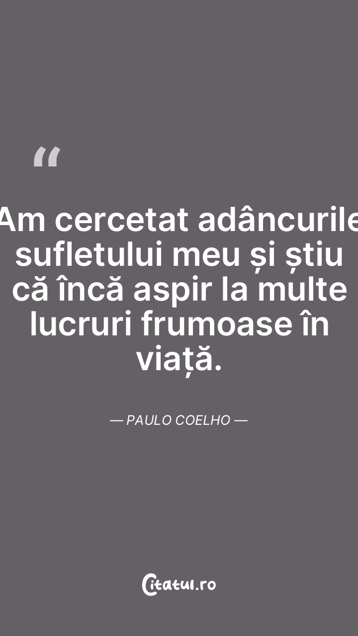 Am cercetat adâncurile sufletului meu și știu că încă aspir la multe lucruri frumoase în viață. Paulo Coelho