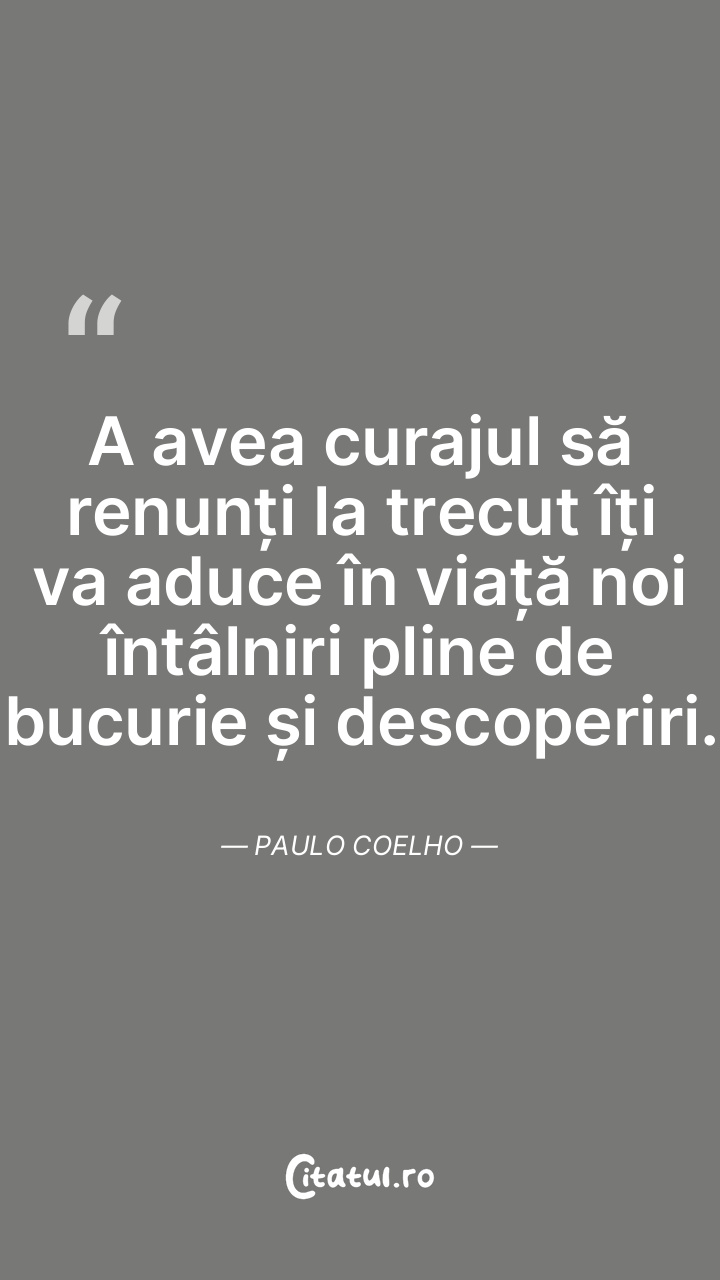 A avea curajul să renunți la trecut îți va aduce în viață noi întâlniri pline de bucurie și descoperiri. Paulo Coelho