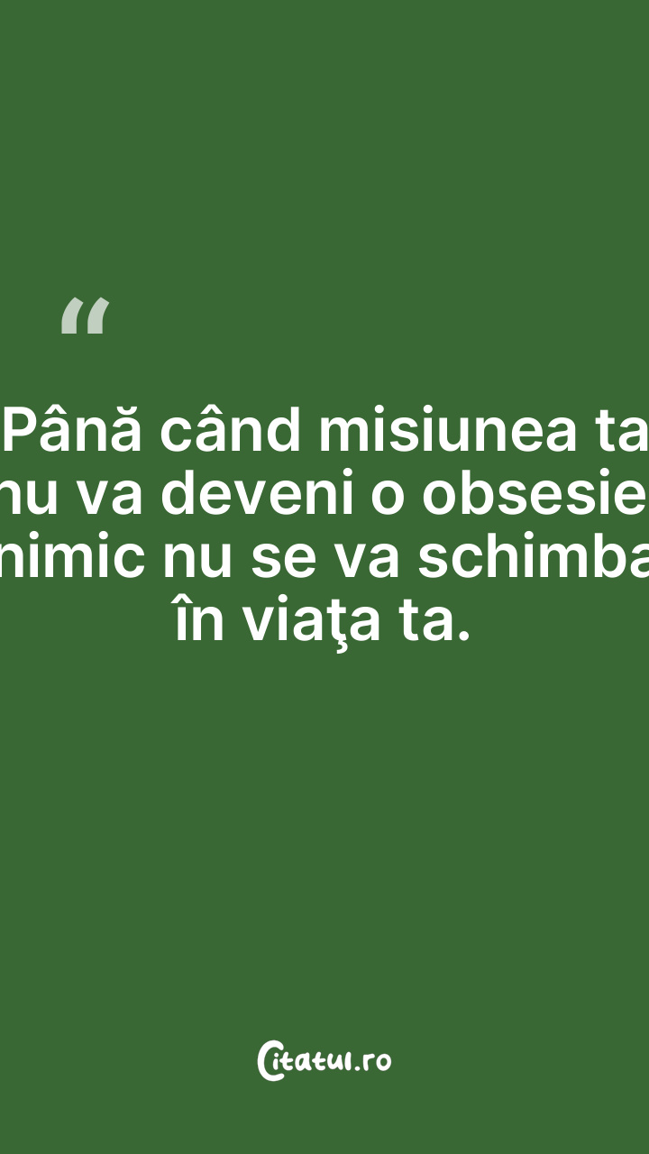 Până când misiunea ta nu va deveni o obsesie, nimic nu se va schimba în viaţa ta.