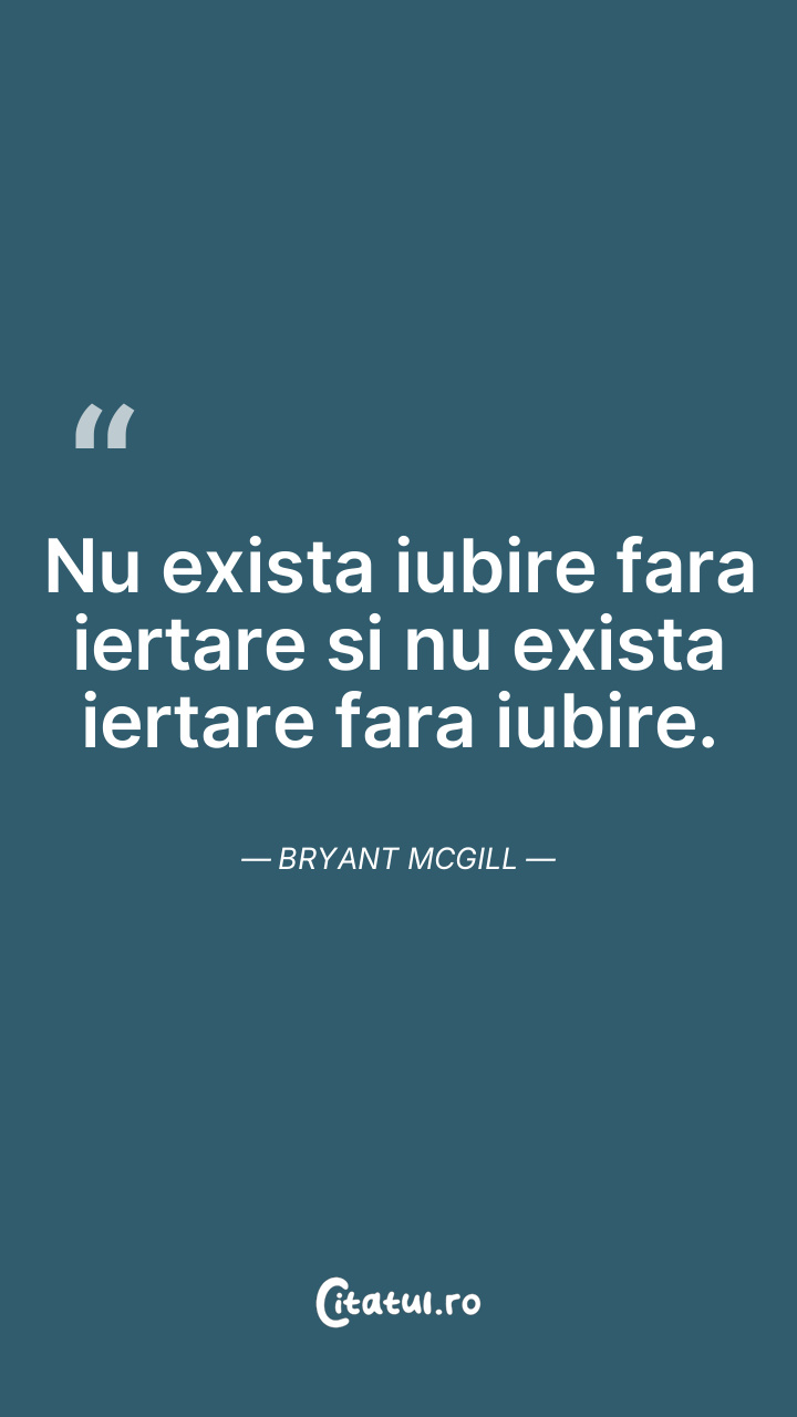 Nu exista iubire fara iertare si nu exista iertare fara iubire. Bryant McGill