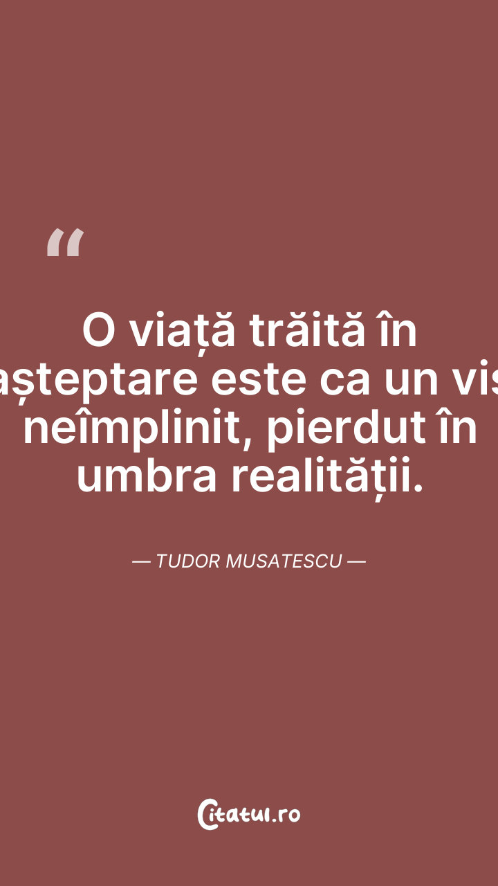 O viață trăită în așteptare este ca un vis neîmplinit, pierdut în umbra realității. Tudor Musatescu