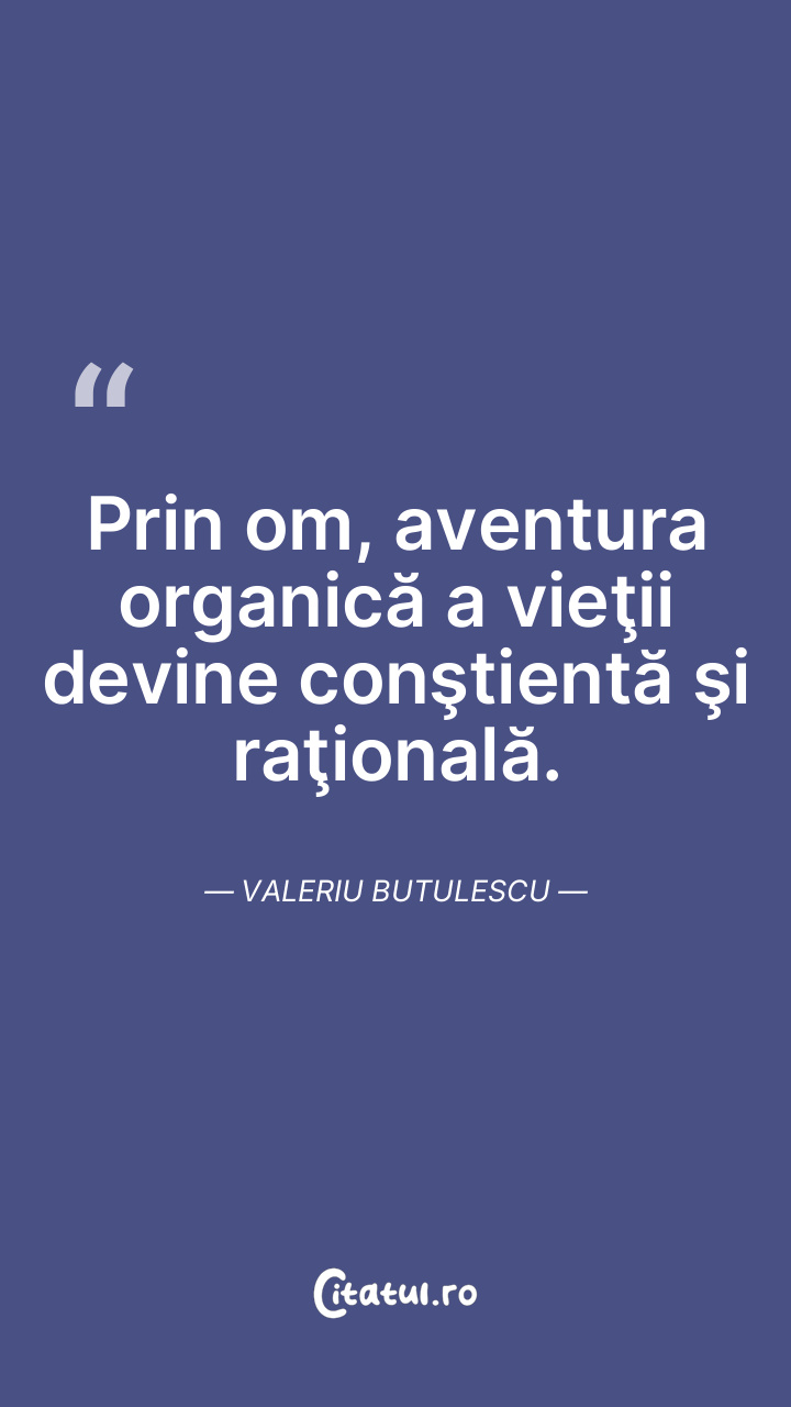 Prin om, aventura organică a vieţii devine conştientă şi raţională. Valeriu Butulescu