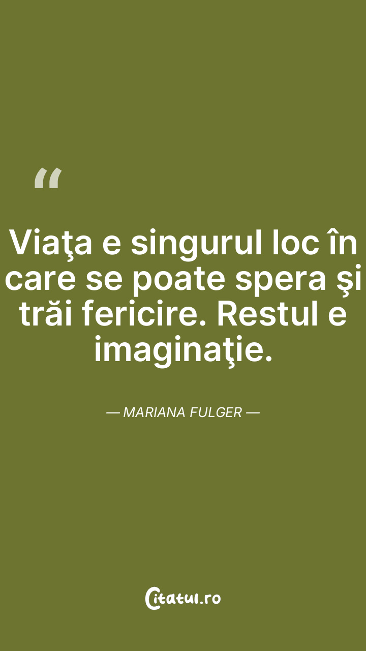 Viaţa e singurul loc în care se poate spera şi trăi fericire. Restul e imaginaţie. Mariana Fulger