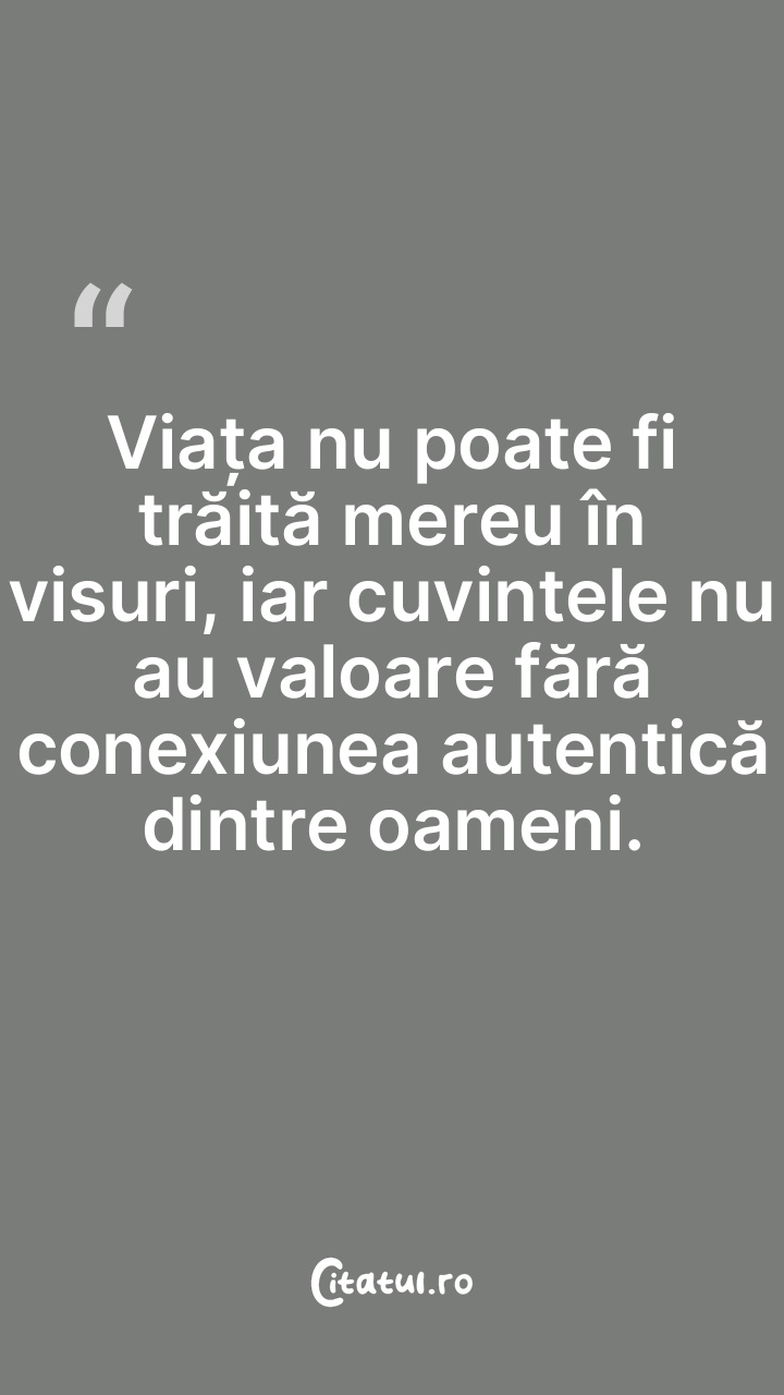 Viața nu poate fi trăită mereu în visuri, iar cuvintele nu au valoare fără conexiunea autentică dintre oameni.