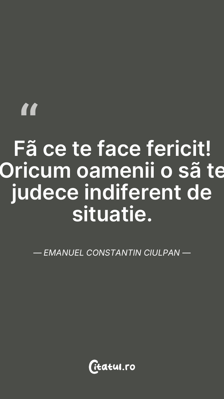 Fã ce te face fericit! Oricum oamenii o sã te judece indiferent de situatie. Emanuel Constantin Ciulpan