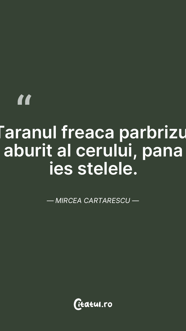 Taranul freaca parbrizul aburit al cerului, p ... Citește tot citatul >