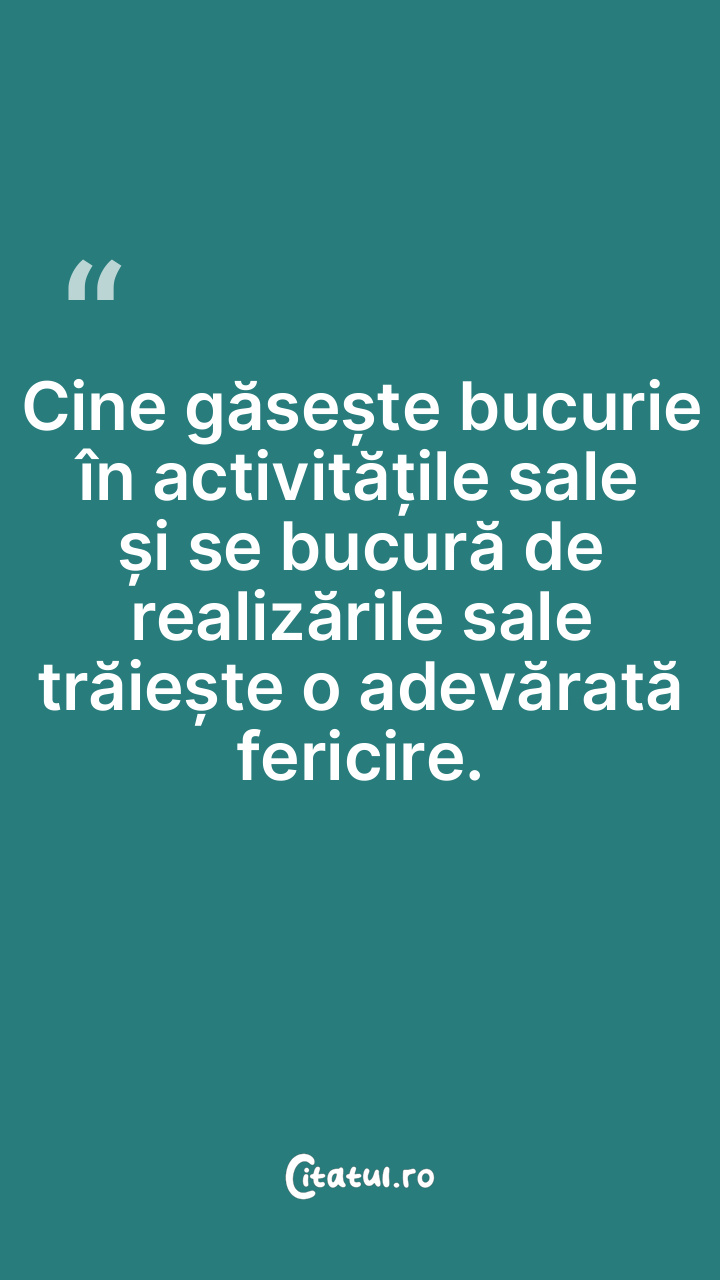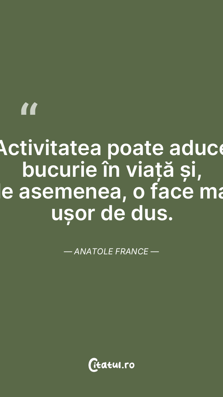 Activitatea poate aduce bucurie în viață și, ... Citește tot citatul >